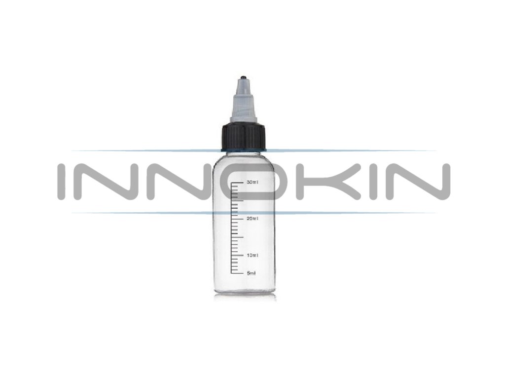 Plnící lahvička s ryskou Open Skull 60ml s uzávěrem pro DIY míchání e-liquidů. Transparentní PE materiál s přesnými ml značkami, odnímatelná pipeta...