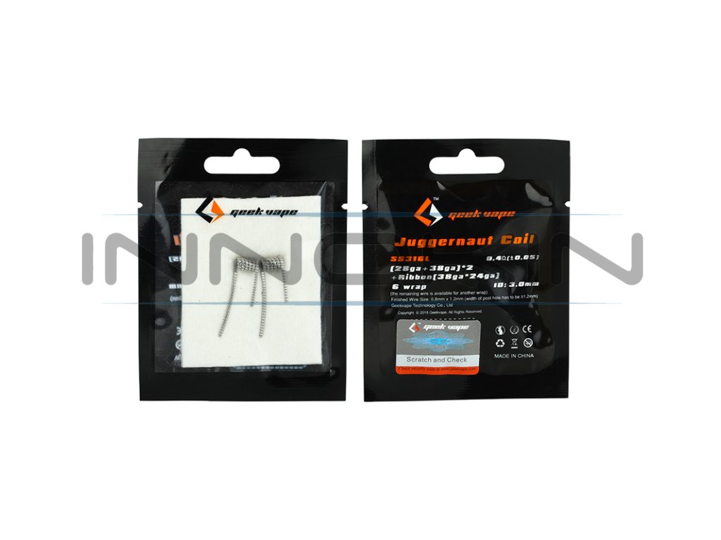 Juggernaut SS316L (28GA+38GA)*2 + Ribbon (38GA*24GA) 0,4ohm - Předmotané spirály GeekVape - VÝPRODEJ.