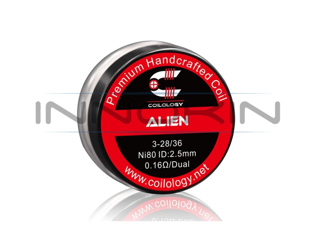 Předmotané spirálky Coilology Alien Ni80 disponují odporem 0,16 ohm. Jsou vyrobeny z nichromu. Jsou tvořeny třemi odporovými dráty s průměry 0,3 mm (28GA) v jádru, které jsou omotané tenkým nichromovým drátem s průměrem 0,13 mm (36GA). Jsou určené pro