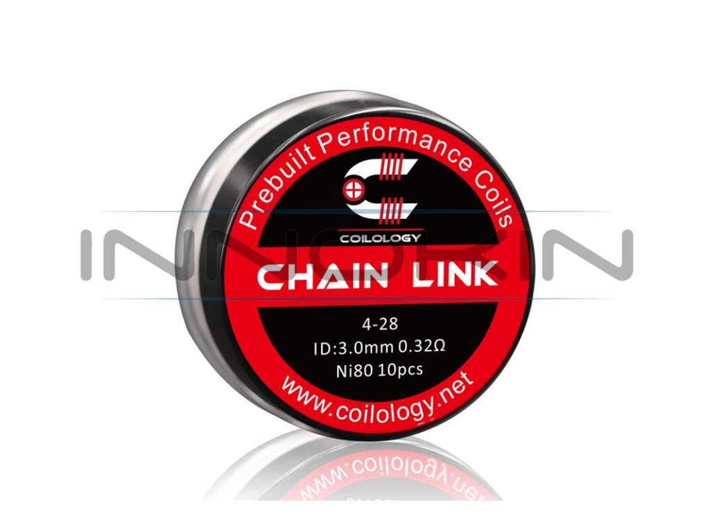 Předmotané spirálky Coilology Chain Link Ni80 disponují odporem 0,32 ohm. Jsou vyrobeny z nichromu. Spirálky jsou tvořené čtyřmi dráty smotanými do sebe do podoby řetízku. Průměry těchto drátů činí 0,3 mm (28GA). Jsou určené pro