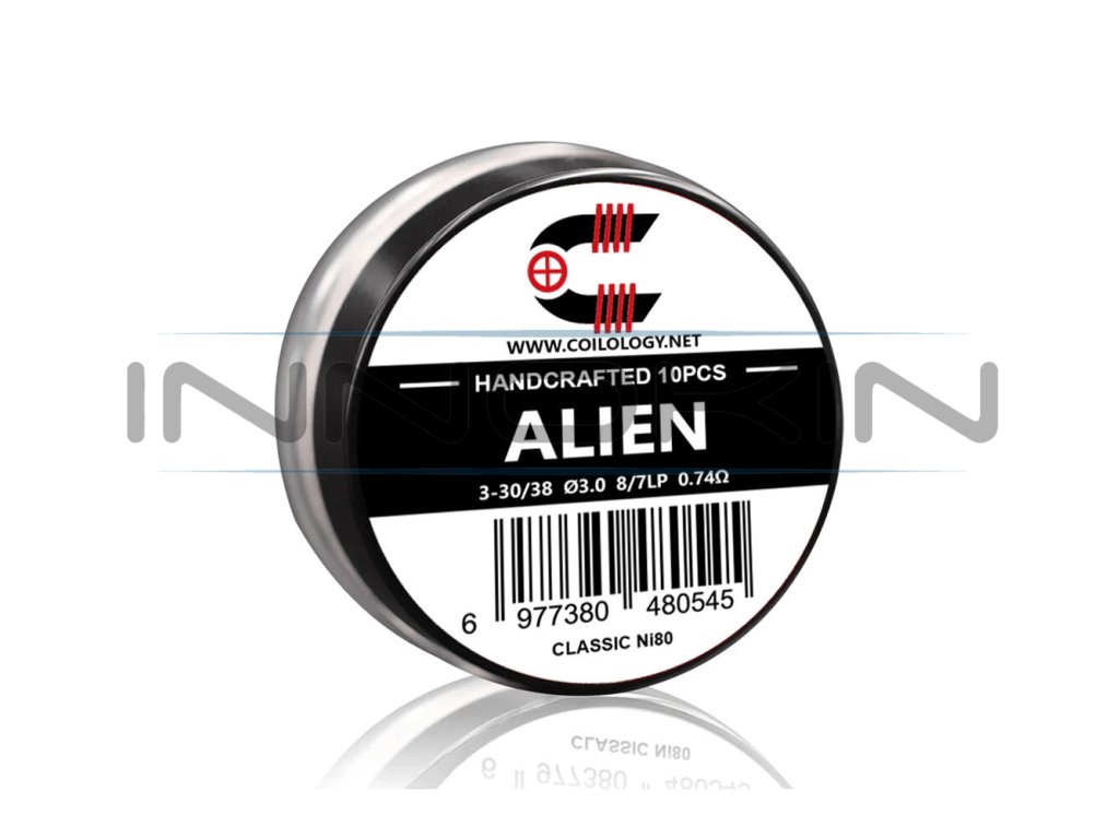 Předmotané spirálky Coilology Alien Classic jsou vysoce kvalitní spirálky určené k instalaci do DIY atomizérů. Jsou vyrobeny z Nichromu Ni80. Jedná se o provedení typu Alien. Jsou tvořeny třemi odporovými dráty, které jsou obmotané tenkým drátem. Předmotané spirálky z materiálu Ni80 lze používat v režimech výkonu, nefungují v teplotních režimech.
