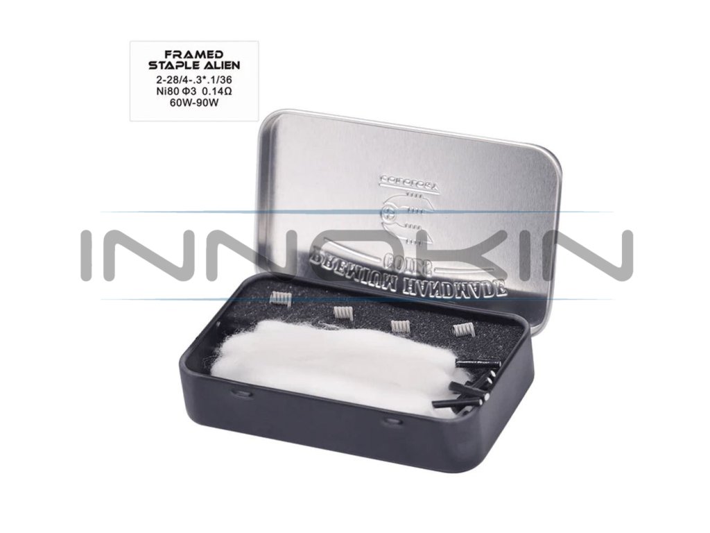Spirálky Coilology Handcrafted Sandvik 4ks jsou balené v praktické plechové krabičce, ve které najdete mimo čtyři kusy spirálek také deset proužků kvalitní přírodní vaty s tkaničkovými koncovkami pro snadnou instalaci do spirálky a atomizéru. Délka těchto proužků činí 10cm a průměr proužků je 3mm.