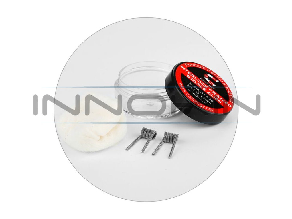 Předmotané spirálky Coilology Interlock Framed Staple Alien Ni80 disponují odporem 0,1 ohm. Jsou vyrobeny z nichromu. Jsou tvořeny čtyřmi plochými odporovými dráty a dvěma kulatými dráty v jádru (2*26GA - 2* 0,4 mm a 4x 0,1 mm), které jsou omotané tenkým nichromovým drátem s průměrem 0,13 mm (36GA). Jsou určené pro