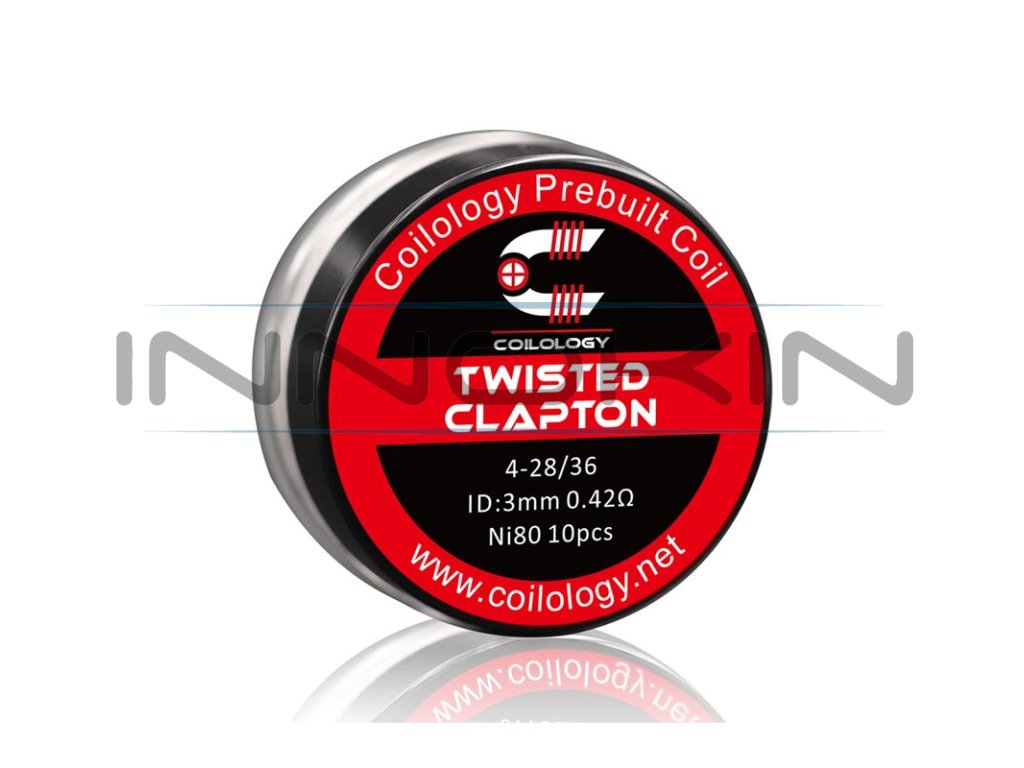 Předmotané spirálky Coilology Twisted Clapton Ni80 disponují odporem 0,42 ohm. Jsou vyrobeny z nichromu. Jsou tvořeny čtyřmi odporovými dráty v jádru s průměrem 0,3 mm (28GA), které jsou omotané tenkým nichromovým drátem s průměrem 0,13 mm (36GA). Jádro složené ze čtyř drátů slouží pro rychlejší náběh žhavení. Jsou určené pro