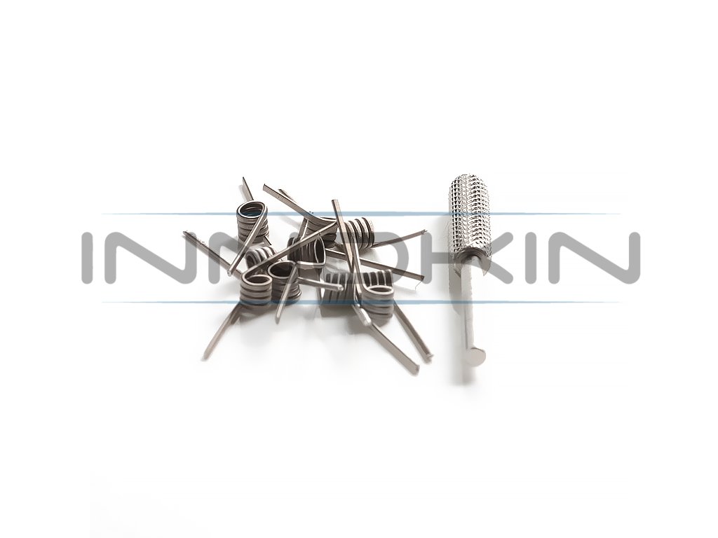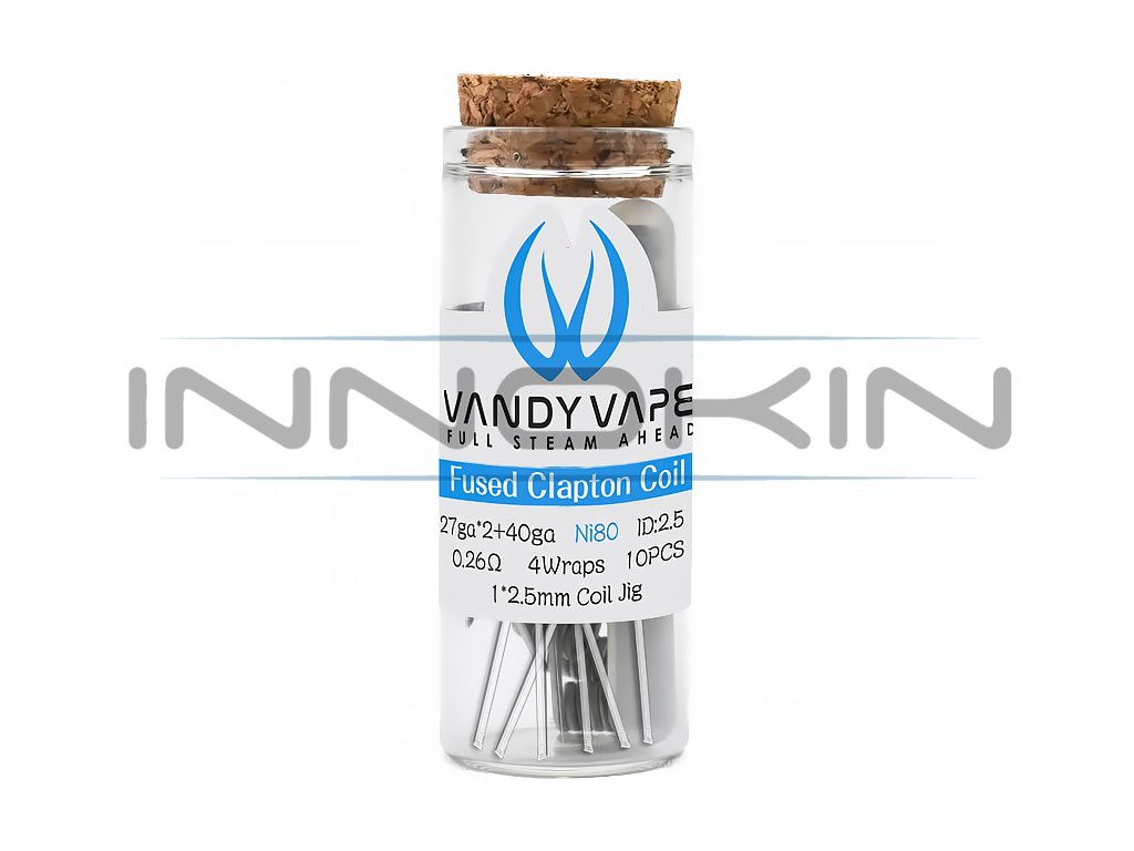 10 ks předmotaných Fused Clapton spirálek (dvojitý vnitřní drát), materiál Ni80, odpor 0,26ohm. Vhodné pro nízkoodporové vapování (DL) a cloudchasing (CCH). Parametry: Vnitřní jádro 27 ga x 2, vnější drát 40 ga, vnitřní průměr 2,5 mm, počet otáček 4. Předpřipravené spirálky Vandy Vape dokáží odstranit potíže s jemnou a přesnou prací a nabízejí pozoruhodnou intenzitu chuti a obrovskou produkci páry. Součástí balení je přípravek na úpravu a namotání spirálek (3mm).