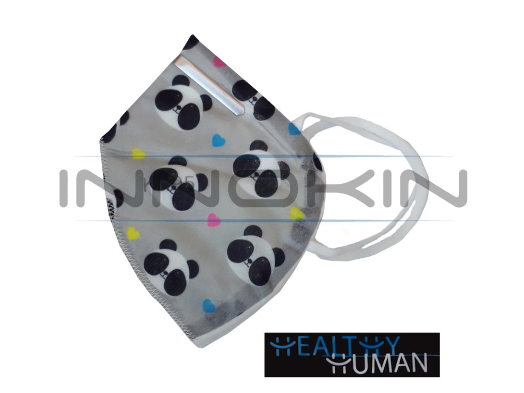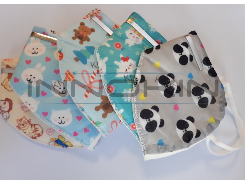 Velmi kvalitní, certifikovaný dětský respirátor KN95 s tvarovatelnou sponou a gumičkami za uši.