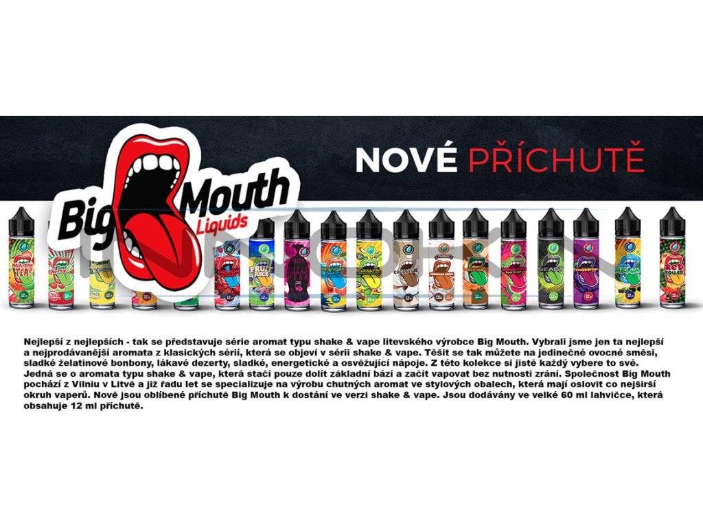 Big Mouth nabízí obrovský výběr a lákavé kombinace. Big Mouth znají téměř všichni. Big Mouth začínal na několika málo příchutích, ale nyní jich má více než stovku. Nabídka Big Mouth nabízí ovocné, dortové, nápojové a další příchutě. Big Mouth má vše, na co si vzpomenete. Big Mouth dodává v krabičce navíc, kromě příchutě, také 30ml lahvičku.