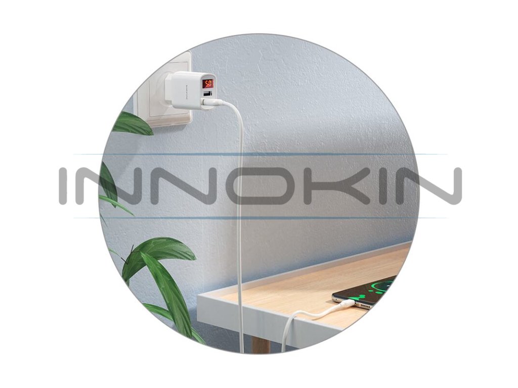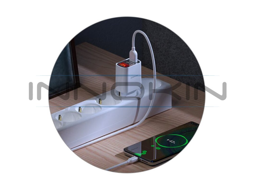 Samozřejmostí je odolná konstrukce z protihořlavého plastu. Výhodou je přítomnost dobíjecího kabelu USB-C s délkou 1 m v základním balení. Vše potřebné pro dobíjení tak máte ihned při ruce. Adaptér disponuje automatickou detekcí připojených zařízení a dokáže efektivně rozložit dobíjecí proud. Aktuální dobíjecí proud a výstupní napětí můžete sledovat na displeji ve vrchní části. Samozřejmostí je celá řada bezpečnostních ochran.