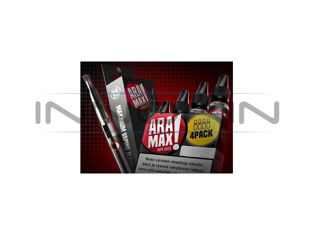 Zvýhodněná sada e-liquidu Aramax 4Pack Max Strawberry 6mg a e-cigarety Aramax Vaping Pen.