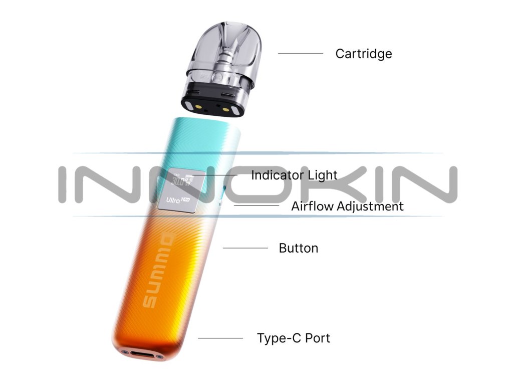 V jádru e-cigarety Summo Ultra 1 Pro na vás čeká integrovaná baterie se solidní kapacitou 1000mAh pro dlouhou výdrž, konzistentní výkon a co nejlepší výsledky při vapování. Baterii je možné kdykoliv opětovně dobíjet prostřednictvím USB-C portu ve spodní části. Model podporuje nabíjení s hodnotami 5V / 1A.