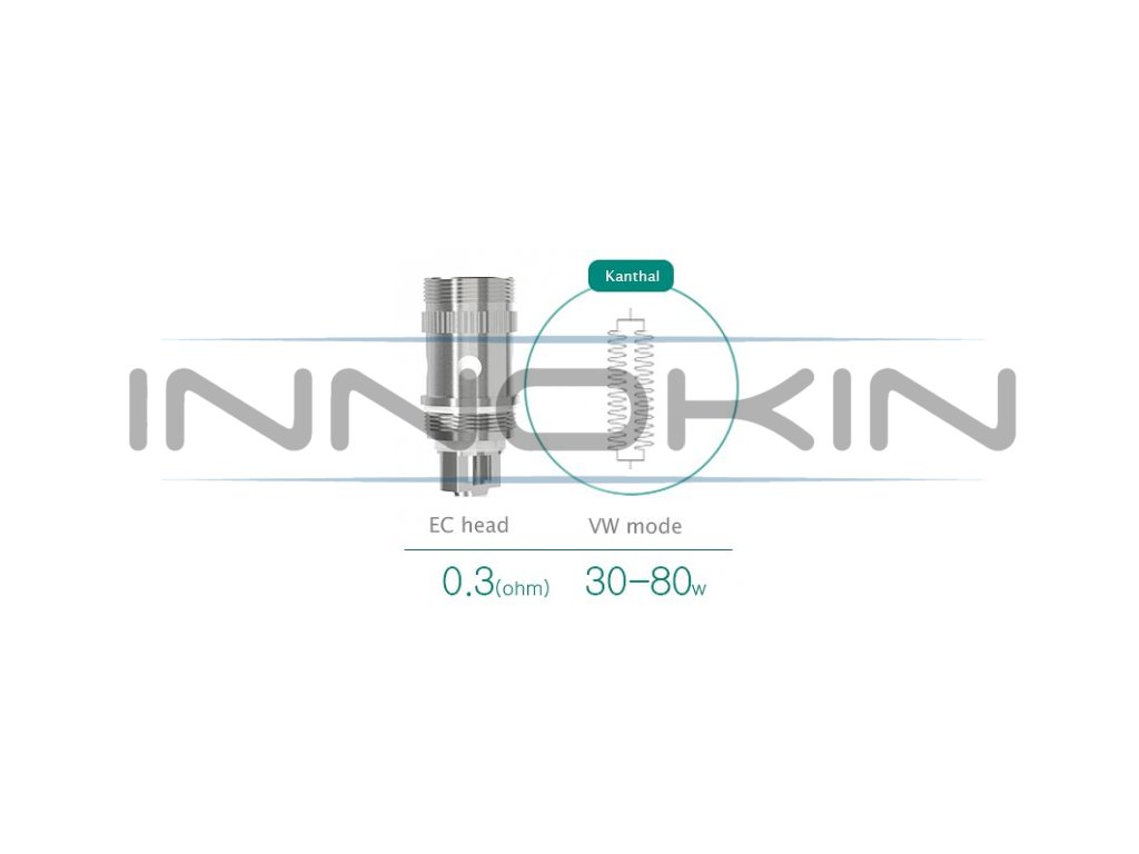Jednou z hlavních inovací, které přináší clearomizér iJust 2, jsou žhavící hlavy nesoucí označení EC. Ty jsou k dostání s kanthalovou žhavící spirálkou s odporem 0,3Ω (až 80W) a 0,5Ω (až 100W) a uvnitř se nachází dvojitá paralelní vertikální spirálka. Ta je vyrobena z 0,4mm silného odporového drátu, díky čemuž je schopna tvořit obrovské množství páry.