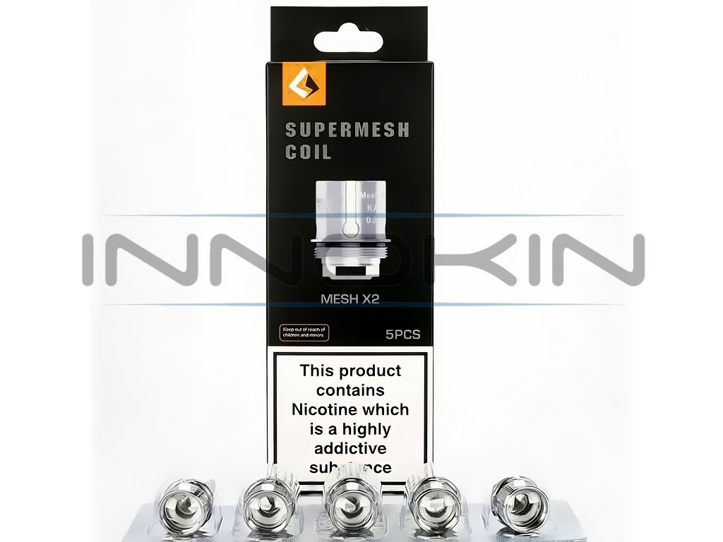 Nová verze žhavících nízkoodporových hlav Super Mesh X, které jsou primárně určeny pro DL vapování. Žhavící hlava je osazena kanthalovu A1 Mesh spirálkou s celkovým odporem 0,40 ohm. Díky velké odpařovací ploše v podobě Mesh pletiva dochází k produkci velkého množství páry. Doporučený výkon 50-60W. Kompatibilní s modely Shield Tank, Aero Tank, Cerberus Tank, Geekvape Aegis Solo 100W Kit, Geekvape Aegis Mini 80W Kit aj.