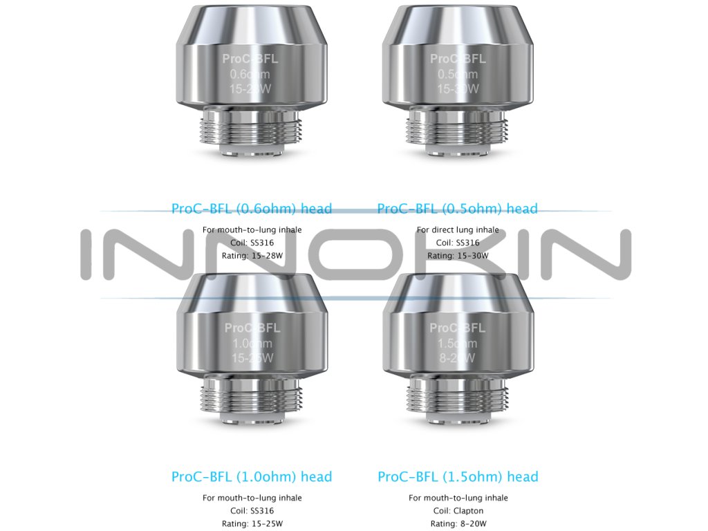 Atomizer ProC-BFL o odporu 1ohm (15W-25W) ze 100% organické bavlny, navržený speciálně pro styl potahování ústa/plíce. Ve spolupráci s Cubis 2 clearomizerem přináší objem nádržky 2ml. Kompatibilní s BF (Joyetech Cubis, Cubis PRO).