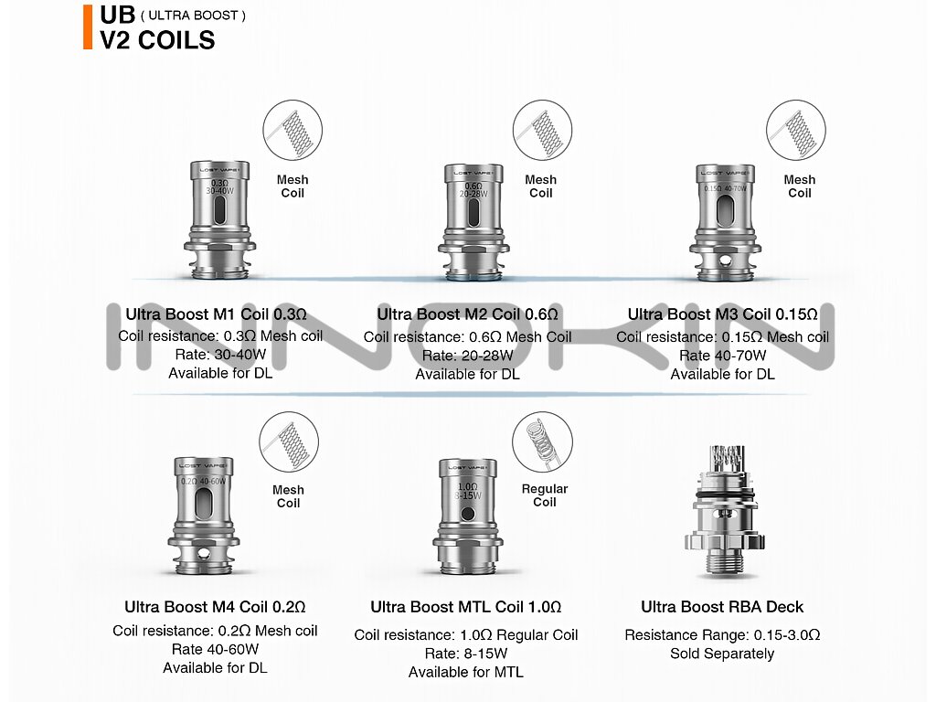 Náhradní žhavící hlava druhé verze Lost Vape Ultra Boost s Mesh spirálkou vhodná pro DL vapování s odporem 0,2ohm. Kompatibilní s modely Lost Vape Ursa Quest Multi Kit, Grus 100W Kit, Gemini Hybrid 80W Pod Mod, Q-Ultra, Thelma 80W Pod Mod, BTB 100W Starter Kit, UBX tank, Ursa Pod tank, UB Pod Tank. Doporučený výkon 40-60W.